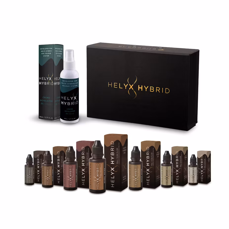 HELYX Hybridfärg från Elleebana är nästa generations färgsystem för frans- och brynstylister som vill erbjuda långvarig färg, skarpare definition och en färgning som även ger ”skin stain”-effekt. Det innebär att färgen både penetrerar hårstråets cortex – precis som en permanent färg – och ger ett visuellt färgresultat på huden för en tydligare form och fylligare look.
